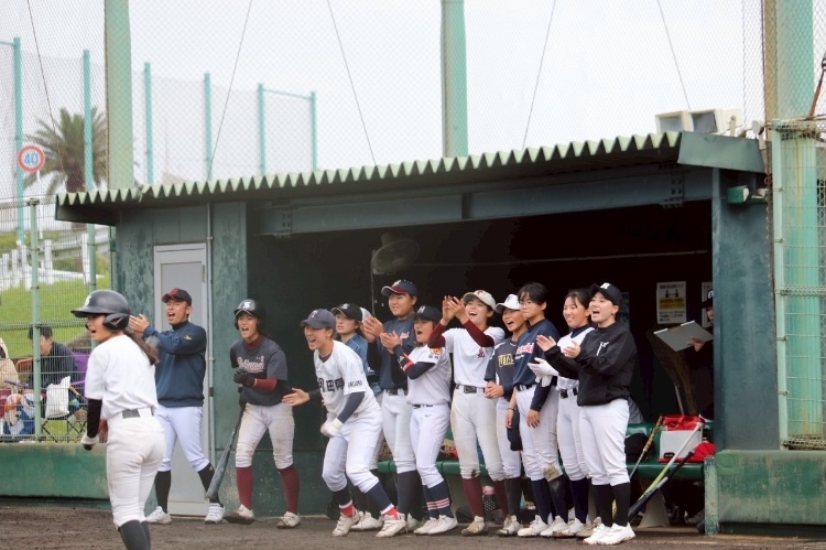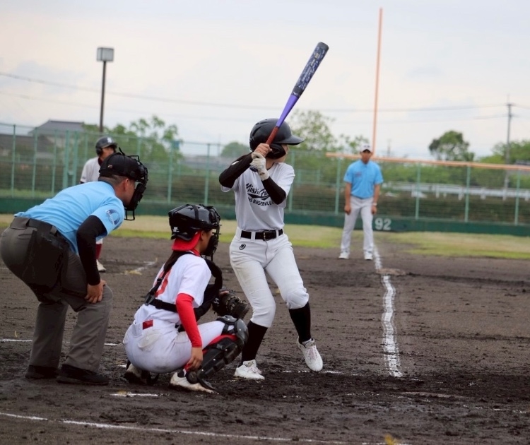 令和7年5月6日に行われた全国大会決定戦。対アストライア戦は,雨の降る中であったが,無事開催することができた。先発の和間は,1回裏に1点を先制されるも,その後は粘りの投球で切り抜けた。1点を追う3回表,9番三苫のレフトオーバーツーベースでチャンスをつくり, 1番石松の送りバントで進塁。相手ピッチャーのワイルドピッチの間に,同点のホームを踏む。2・3・4回は,ランナーを出しながらも,2番手の白川が要所を抑え無失点で切り抜ける。 同点で迎えた5回表,8番松本がフォアボールで出塁。 9番三苫の送りバント, 1番石松のセカンドゴロで進塁させていき,ツーアウト3塁。一打逆転のチャンスに,バッターは2番古賀。9球粘った後の10球目。ストレートを完璧にとらえ,ライトオーバーのランニングホームランで,この回逆転に成功する。6回には,打線が奮起する。4番綿貫のサードのエラーを誘う強烈なゴロで出塁すると, 5番佐藤の強烈なライナーでのセンターオーバーで4点目のホームを踏む。 相手ピッチャーが乱れた間に,この回一挙3点を奪う。投げては,白川が2回途中から安定のピッチングで7回まで1失点。 7回にレフトへの飛球を松田がランニングキャッチで捕球し,ゲームセット。6―2で勝利を収め。見事全国大会出場を決めた。