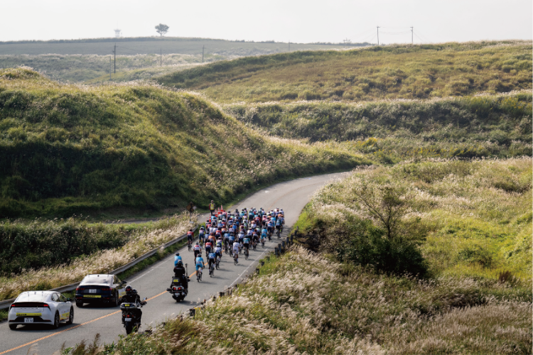 昨年10月、第2回大会「マイナビ ツール・ド・九州2024」は、国際自転車競技連盟(UCI)からクラス1認定を受けて開催されました。世界トップディビジョンの「ワールドチーム」を含む、合計17チーム、99名(23か国)のライダーが、九州の地を駆け抜けました。沿道には10万人を超える観客が詰めかけ、世界レベルのレースを目のあたりにしました。