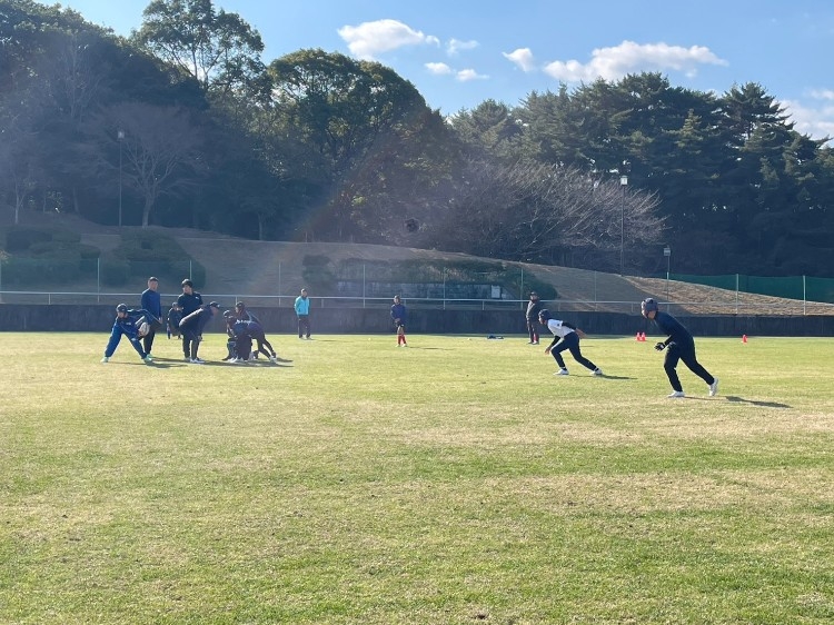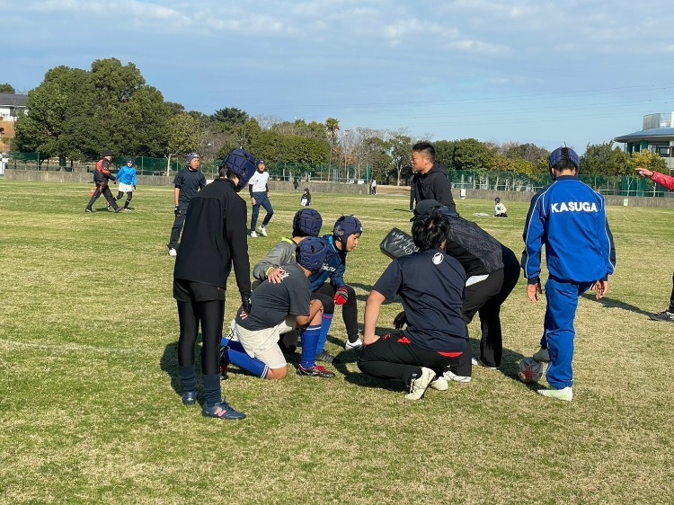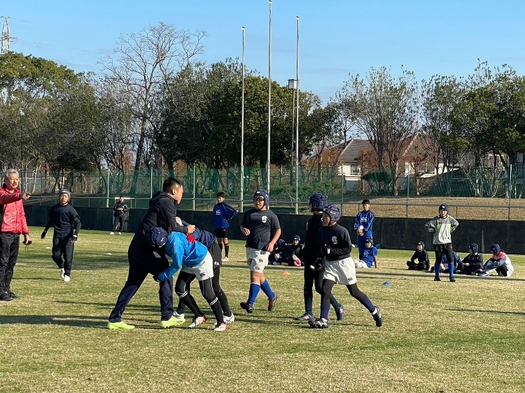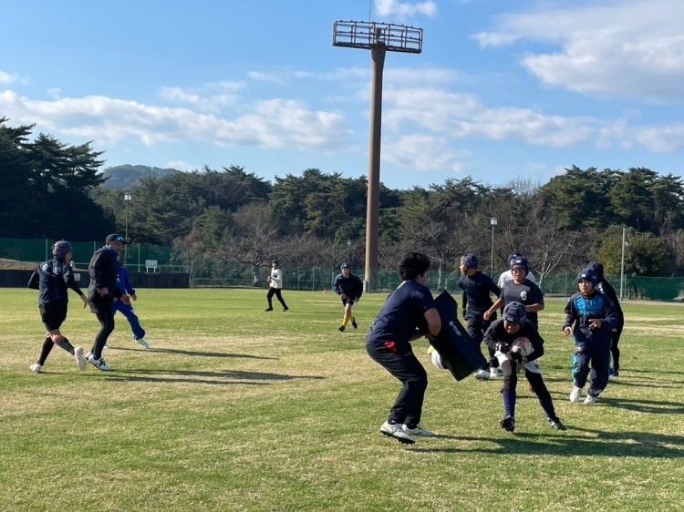 コーチの構えるタックルバッグへ低く、力強く飛び込むタックル練習や、実践形式のアタック練習、一人一人がしっかりとボールを繋ぐことを意識して、スピード感のあるランパスなどを行いました。