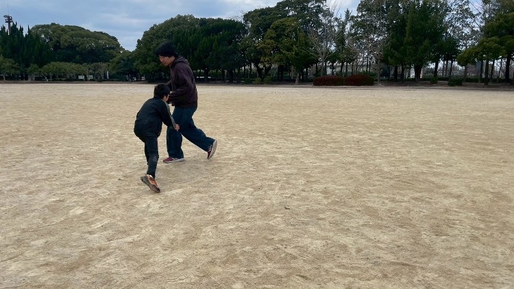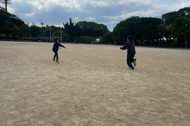 冬休みはお父さんと、タックルやパスの練習をしました。