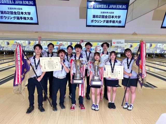 2024年12月7日~9日に神奈川県川崎市で開催された「第62回全日本大学ボウリング選手権大会」は、学生連合所属の選手にとって1年で最大の目標となっている大会です。男子は5人チーム戦、女子は2人チーム戦で、それぞれの優勝校に文部科学大臣杯を授与。協会主催大会の中でも1・2の歴史を誇る大会でもあります。