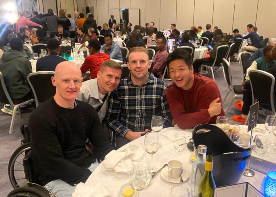 レース後に日本人の全車いすマラソンランナーの皆さんと。